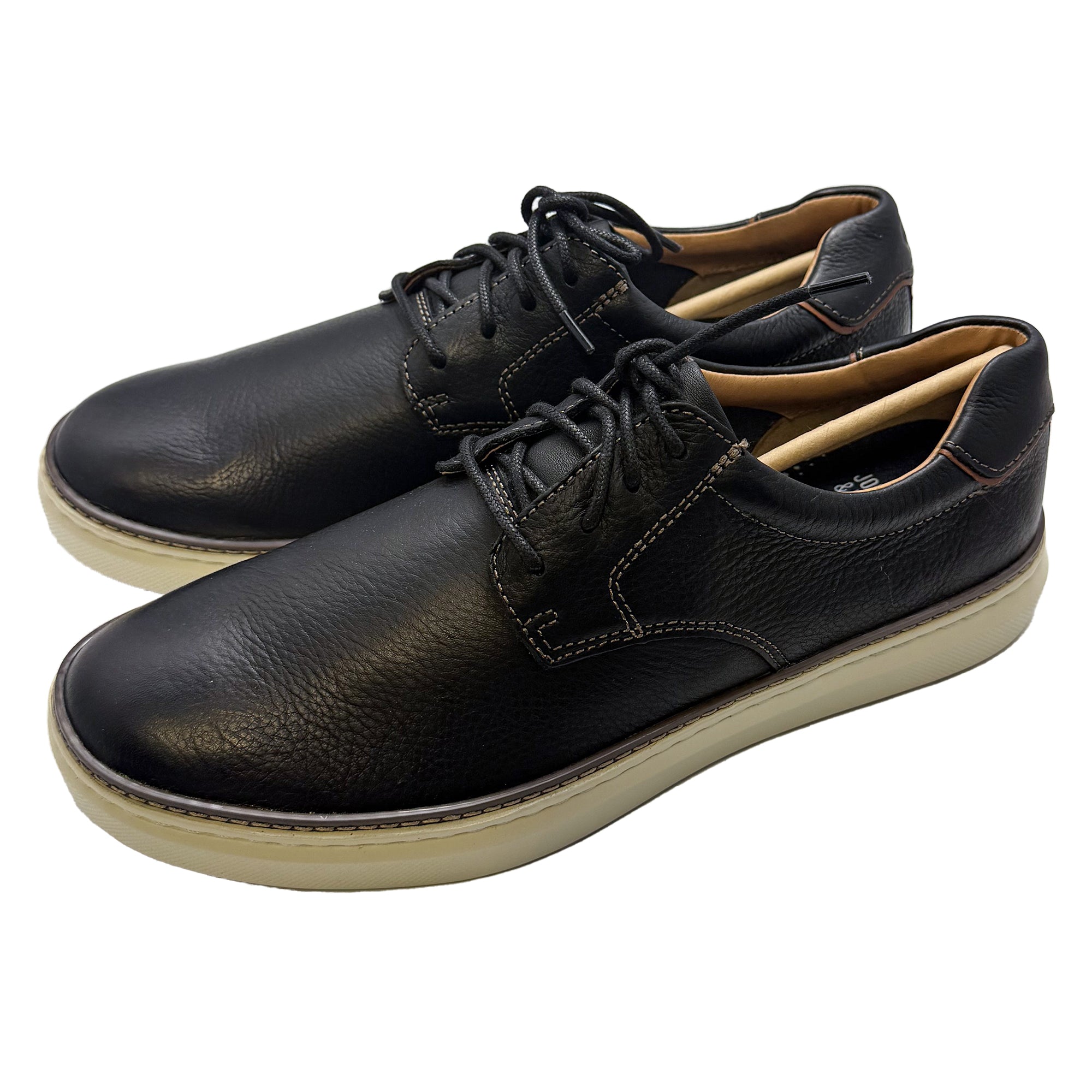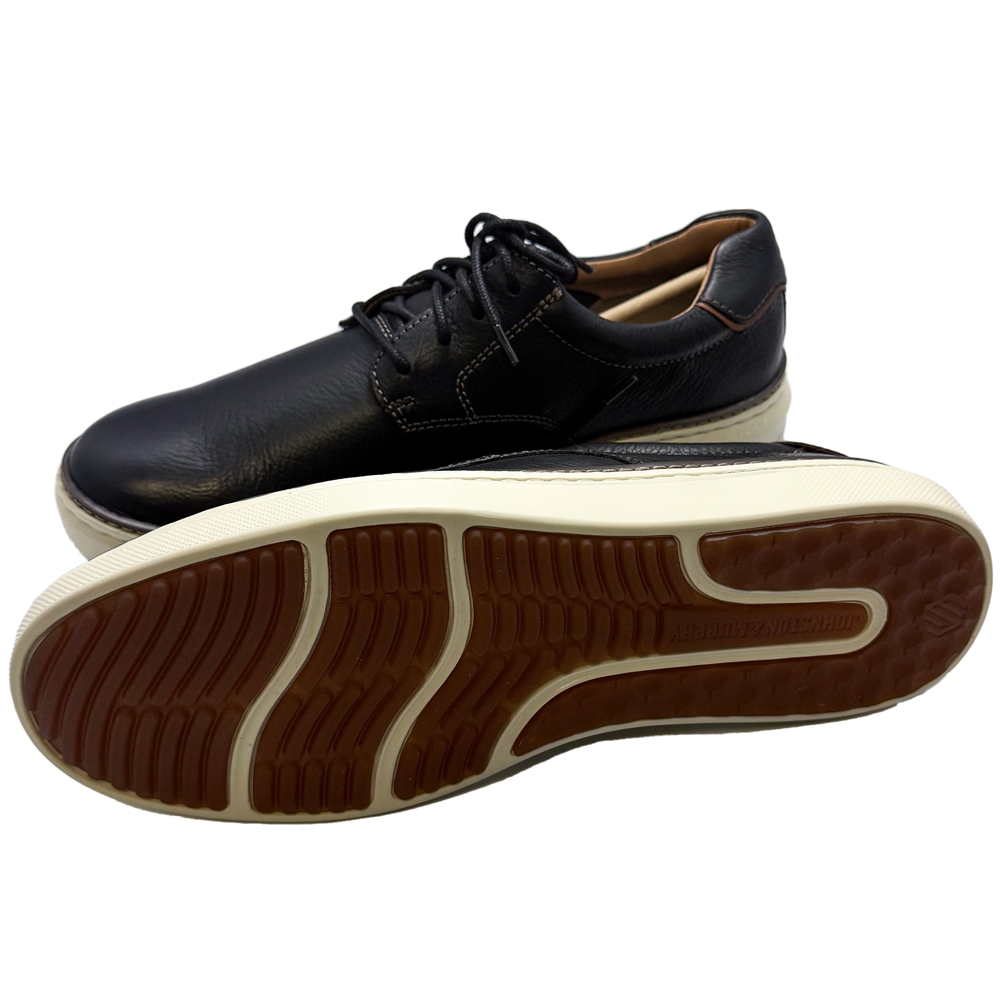 - Made of a padded tongue, collar, and heel, the Johnston & Murphy® Mcguffey 2 Plain Toe shoes pair perfectly with most outfits and styles. The full-grain leather upper features a lace-up closure for a secure fit. They are designed with a leather and textile lining and high-rebound, ultra-comfortable XC Foam footbed and midsole for added comfort.